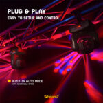 The light features 12 DMX channels and a 3-pin XLR DMX in/output. Therefore, it can be easily connected to an external DMX controller for custom operation.